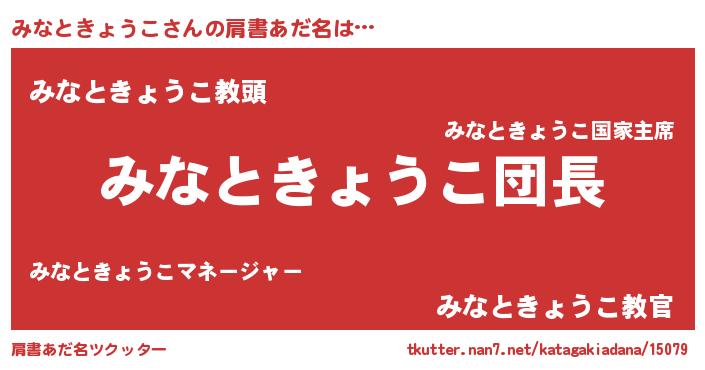 | 意味不明あだ名 | 『とにかく怪しいみなときょうこ』 |