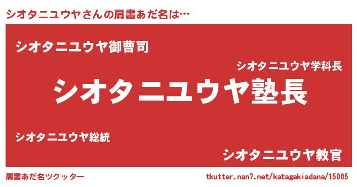 | 男性向けラノベタイトル風あだ名 | 『ダンジョンにシオタニユウヤを求めるのは間違っているだろうか』 |