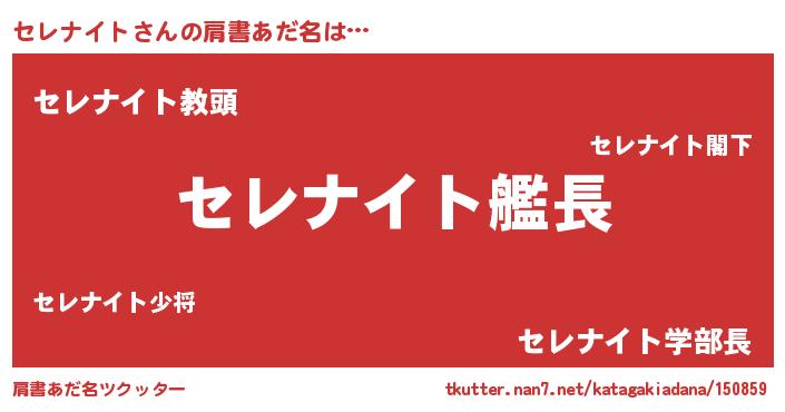 | ヘコむあだ名 | 『セレナイト(苦笑)』『セレふぇ~』 |