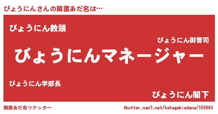 | 意味不明あだ名 | 『永久保存びょうにん』『自称びょうにん』 |