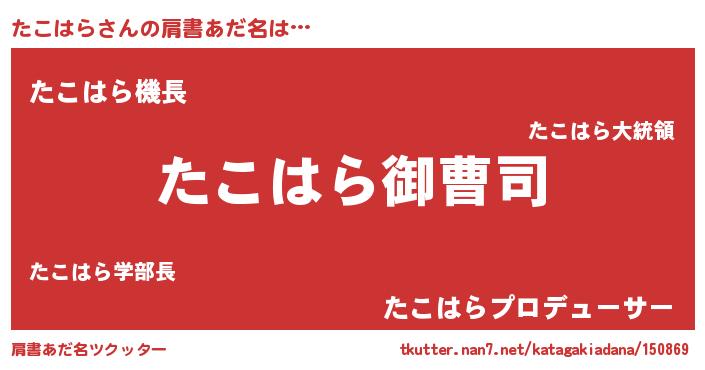 | 男性向けラノベタイトル風あだ名 | 『たこはらの憂鬱』『緋弾のタコハラ』 |
