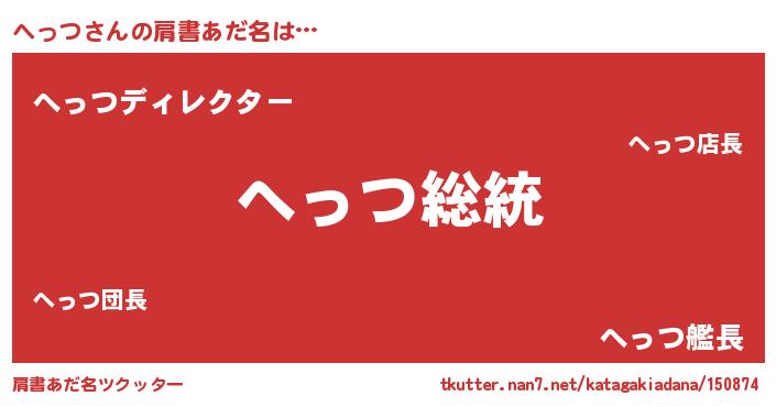 | 男性向けラノベタイトル風あだ名 | 『魔法科高校のへっつ』 |