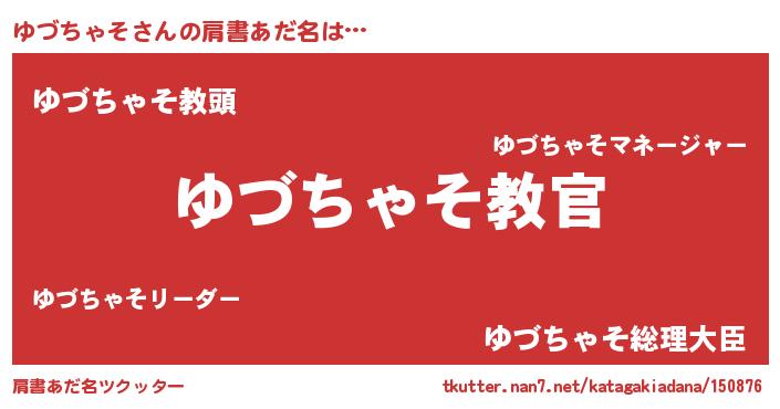 | 男性向けラノベタイトル風あだ名 | 『この素晴らしい世界にゆづちゃそを!』 |