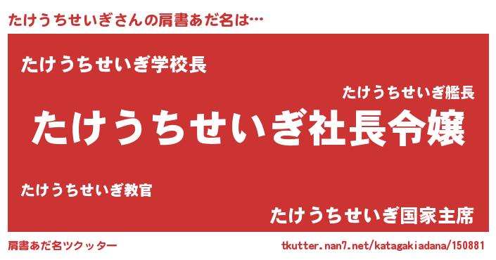 | 男性向けラノベタイトル風あだ名 | 『たけうちせいぎの憂鬱』 |