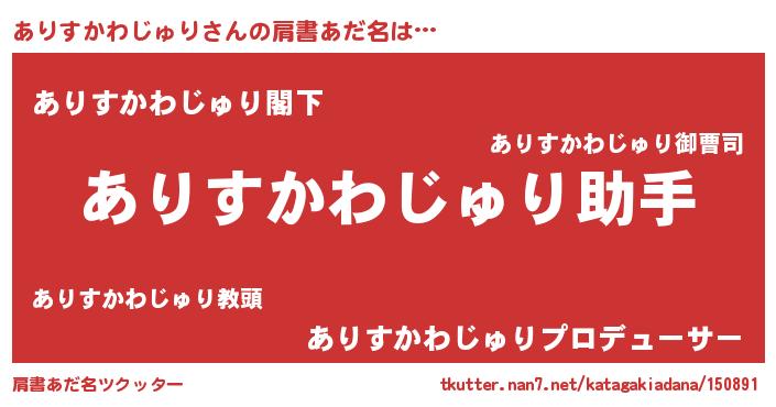 | ヒーロー風カッコイイあだ名 | 『慈愛の使者ありすかわじゅり』 |