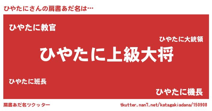 | ヒーロー風カッコイイあだ名 | 『仮面ヒヤダー』『ウルトラひやたにマン』 |