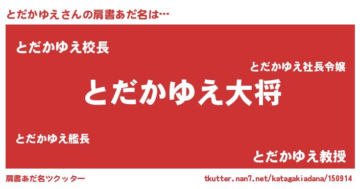 | ヒーロー風カッコイイあだ名 | 『ネオトダカユエ』『愛の使者とだかゆえ』 |