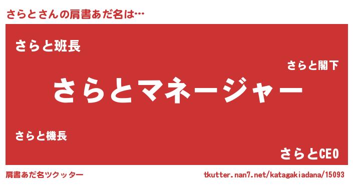 | 男性向けラノベタイトル風あだ名 | 『はたらくさらとさま!』『さらとの憂鬱』 |