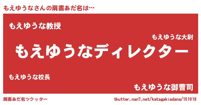 | ヒーロー風カッコイイあだ名 | 『慈愛の使者もえゆうな』『仮面モエダー』 |