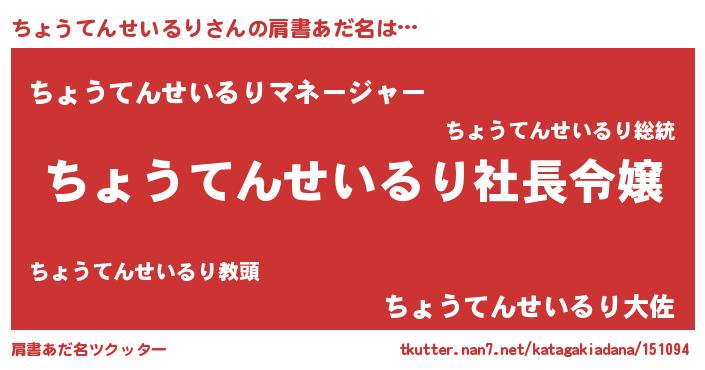 | ヒーロー風カッコイイあだ名 | 『スーパーチョウテンセイルリ』 |