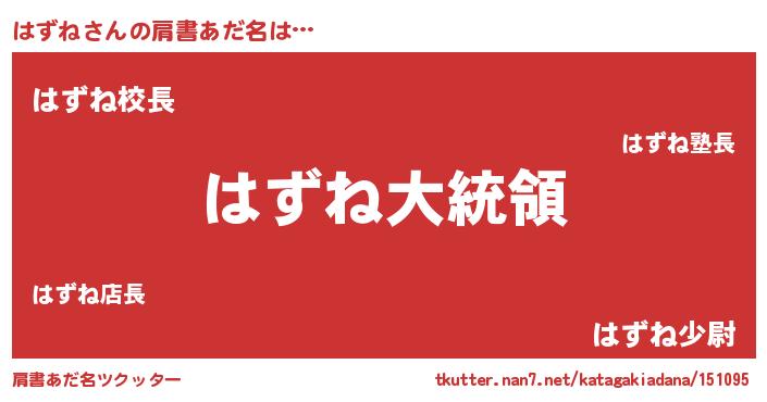 | ヘコむあだ名 | 『豆乳』『はずね(爆)』『はず太郎』 |