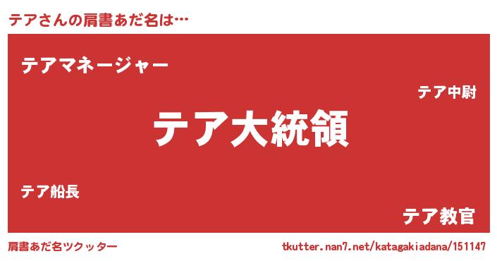 | ヘコむあだ名 | 『つくし』『テアふぇ~』『テア(笑)』 |