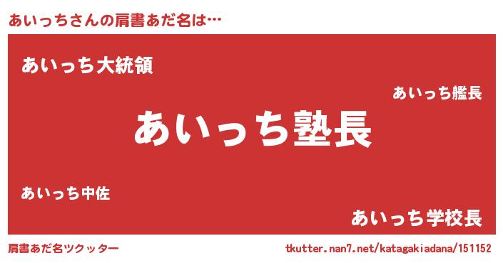 | 女子向けラノベタイトル風あだ名 | 『あいっちは平凡を望む』 |