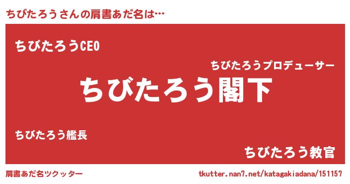 | 男性向けラノベタイトル風あだ名 | 『Re:ちびたろうから始める異世界生活』 |