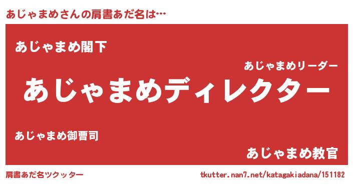 | 男性向けラノベタイトル風あだ名 | 『あじゃまめに滅ぼされるだけの簡単なお仕事です』 |