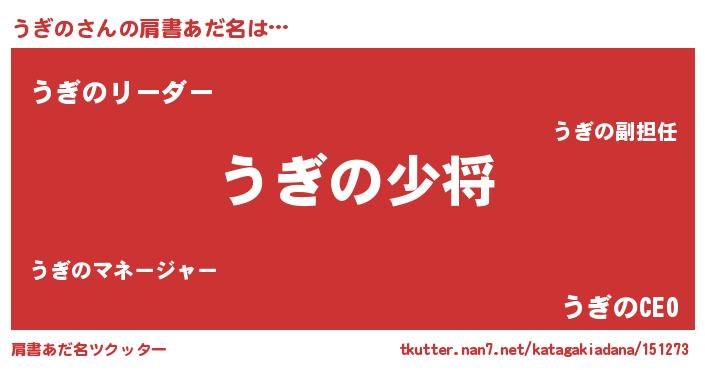 | 男性向けラノベタイトル風あだ名 | 『ウギノスレイヤー』『うぎのの憂鬱』 |
