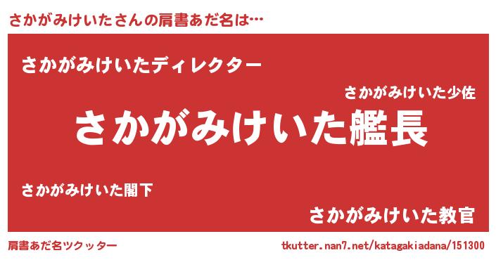 | 意味不明あだ名 | 『住所不定無職さかがみけいた(14歳)』 |