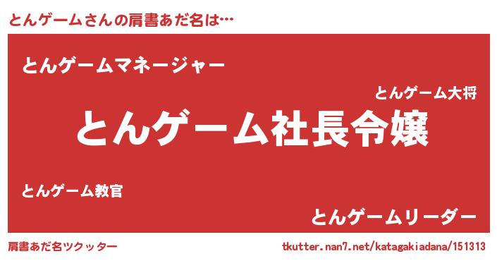| 男性向けラノベタイトル風あだ名 | 『とんゲームの憂鬱』 |