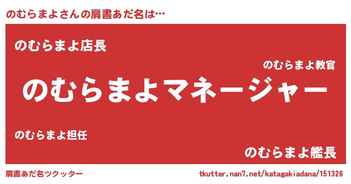 | 男性向けラノベタイトル風あだ名 | 『のむらまよに滅ぼされるだけの簡単なお仕事です』 |