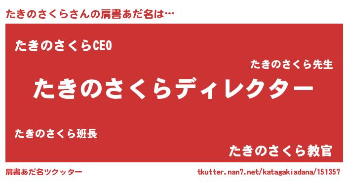 | 男性向けラノベタイトル風あだ名 | 『はたらくたきのさくらさま!』 |