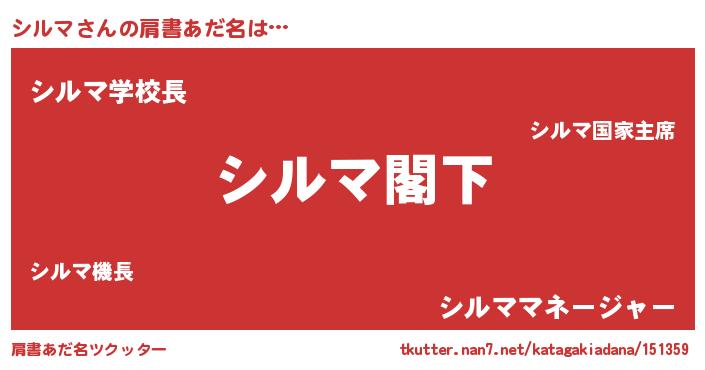 | 意味不明あだ名 | 『自称シルマ』『眠気覚ましガムシルマ味』 |