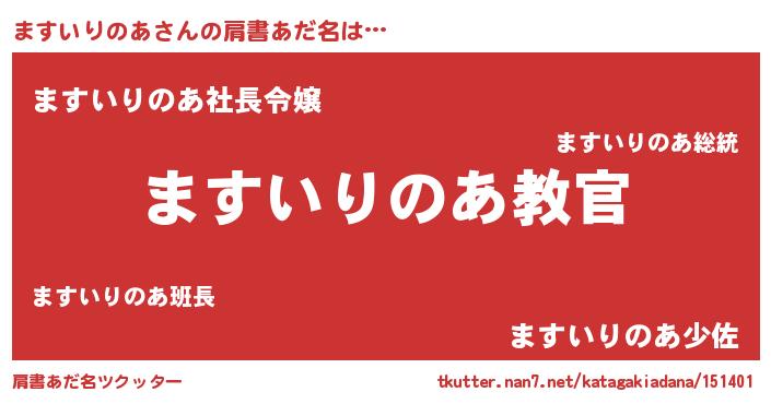 | 意味不明あだ名 | 『住所不定無職ますいりのあ(56歳)』 |