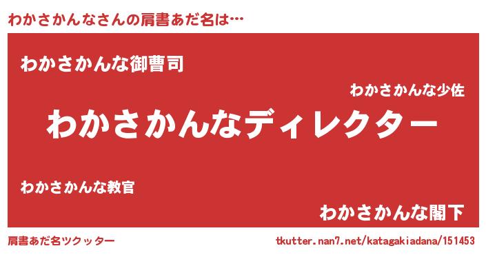 | 男性向けラノベタイトル風あだ名 | 『わかさかんなに滅ぼされるだけの簡単なお仕事です』 |