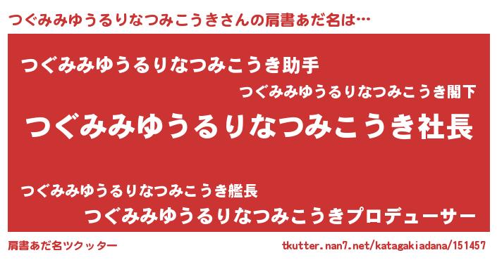 | ヒーロー風カッコイイあだ名 | 『スーパーツグミミユウルリナツミコウキ』 |