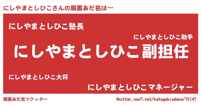 | ヘコむあだ名 | 『にしやまとしひこ(震え声)』『にしっ子』 |
