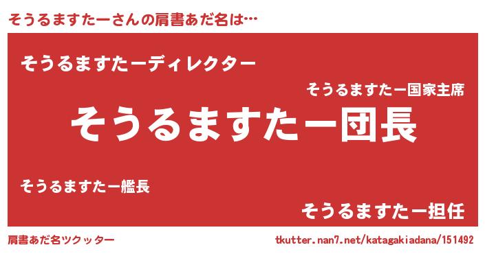 | 胡散臭い通販商品みたいなあだ名 | 『信頼と実績のサプリメント…その名も「そうるますたー」』 |