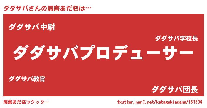 | 男性向けラノベタイトル風あだ名 | 『ダダサバに滅ぼされるだけの簡単なお仕事です』 |