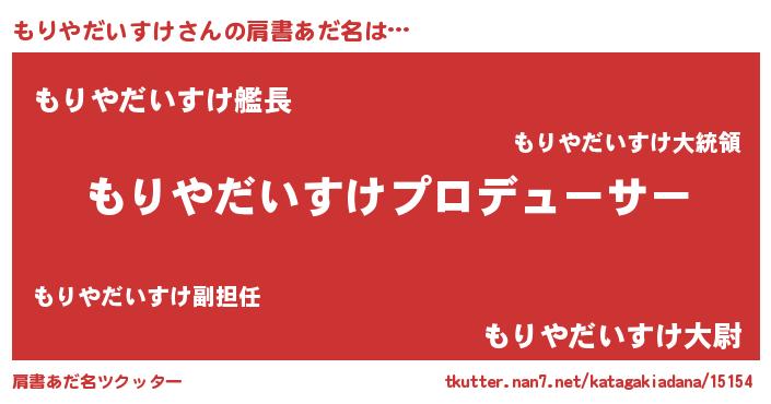 | 男性向けラノベタイトル風あだ名 | 『もりやだいすけに滅ぼされるだけの簡単なお仕事です』 |