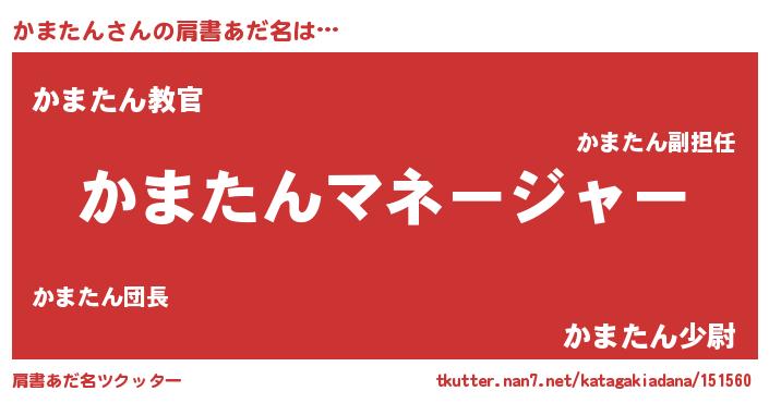 | 男性向けラノベタイトル風あだ名 | 『はたらくかまたんさま!』 |