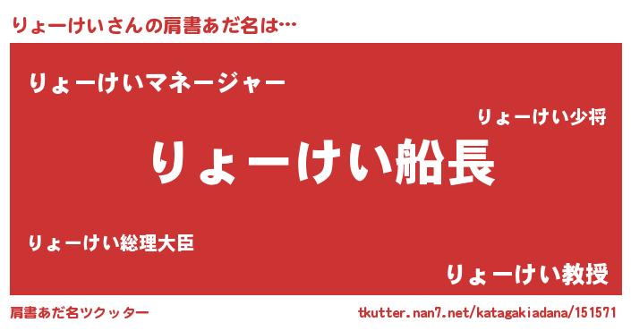 | ヘコむあだ名 | 『豆乳』『りょーけい(笑)』 |