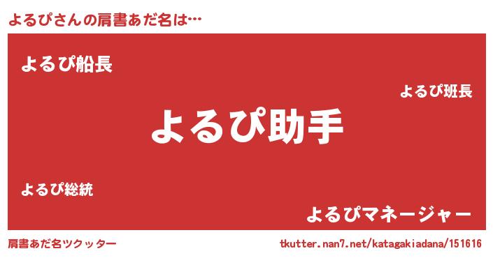 | ヒーロー風カッコイイあだ名 | 『正義の使者よるぴ』『黄金騎士ヨル』 |