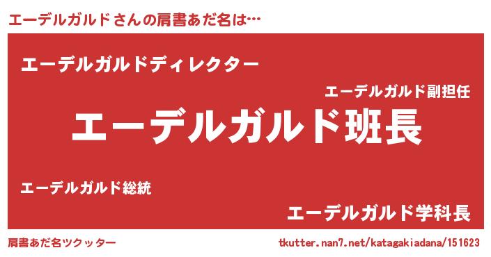 | ヒーロー風カッコイイあだ名 | 『黄金騎士エー』『ネオエーデルガルド』 |