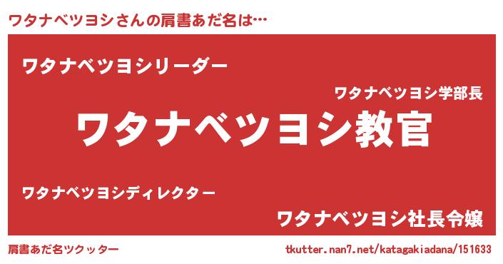 | ポケモン風あだ名 | 『ワータイ』『ヒワタナベツヨシ』 |