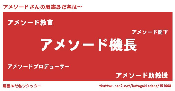 | ヘコむあだ名 | 『アメソード(震え声)』『豆乳』 |