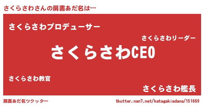 | ファンタジー風あだ名 | 『サクフェル』『カークサクラー』 |