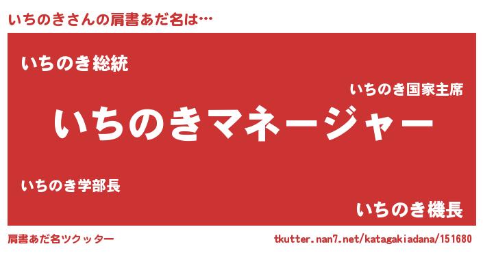 | 男性向けラノベタイトル風あだ名 | 『はたらくいちのきさま!』 |