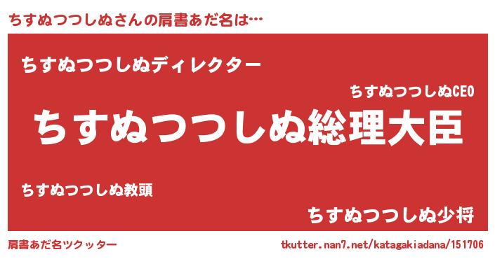 | 女子向けラノベタイトル風あだ名 | 『ちすぬつつしぬの雑貨屋さん』 |