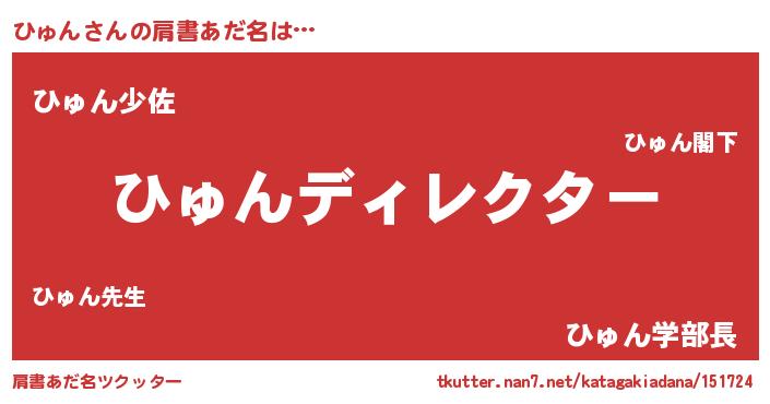| ヒーロー風カッコイイあだ名 | 『慈愛の使者ひゅん』『究極戦士ヒュン』 |