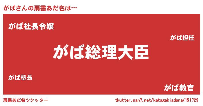 | ヒーロー風カッコイイあだ名 | 『ウルトラがばマン』『スーパーガバ』 |