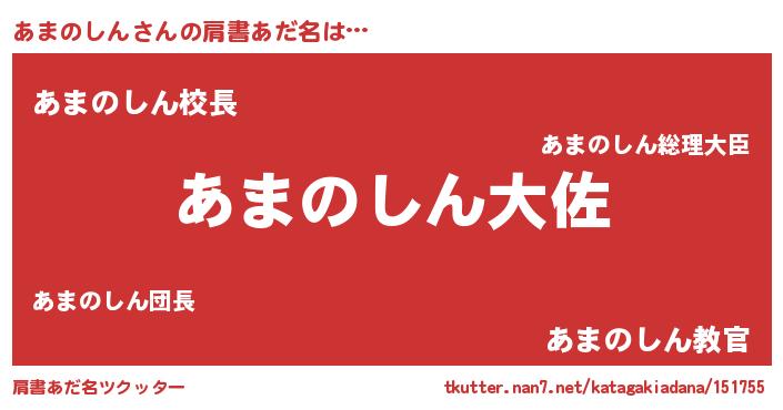 | 女子向けラノベタイトル風あだ名 | 『あまのしんの玉の輿計画!』 |