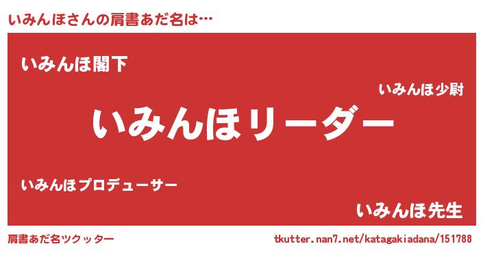 | ヘコむあだ名 | 『いみぷりん』『いみんほ(小並感)』 |