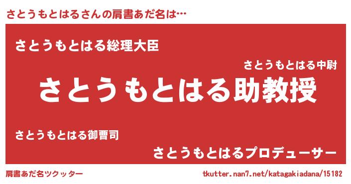 | 男性向けラノベタイトル風あだ名 | 『ノーゲーム・ノーサトウモトハル』 |