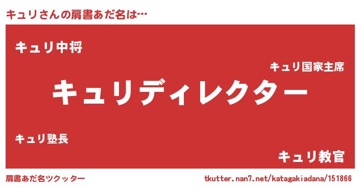 | ヒーロー風カッコイイあだ名 | 『仮面キュダー』『ウルトラキュリマン』 |