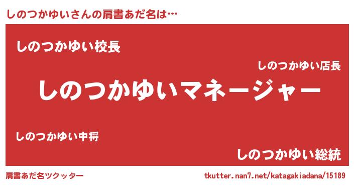| 男性向けラノベタイトル風あだ名 | 『しのつかゆいに滅ぼされるだけの簡単なお仕事です』 |
