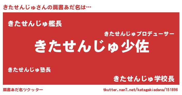 | 男性向けラノベタイトル風あだ名 | 『転生したらきたせんじゅだった件』 |