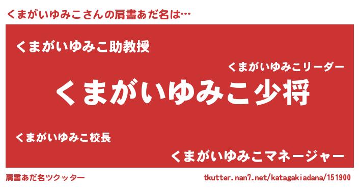 | ヘコむあだ名 | 『くまっぺ』『くまがいゆみこ(笑)』 |